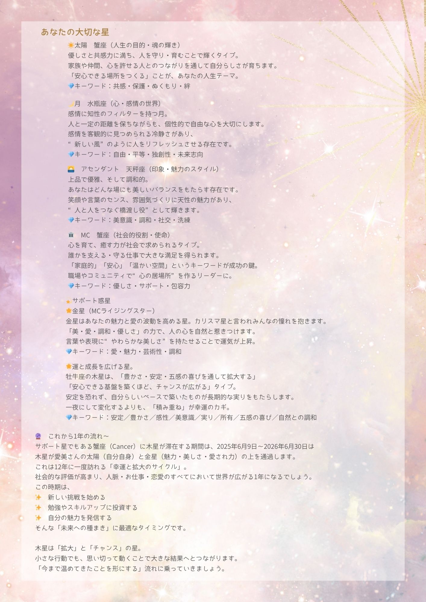 身につける方の 太陽星座・月星座・そしてチャートから導かれるサポート惑星 のエネルギーを一つの輪にした、
